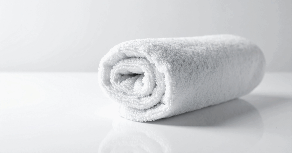 バスタオルを丸めて胸椎(肩甲骨の間)に当て仰向け。
